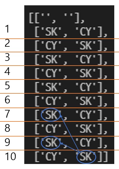 상근이가 게임을 이기면 SK를, 창영이가 게임을 이기면 CY을 출력한다.
