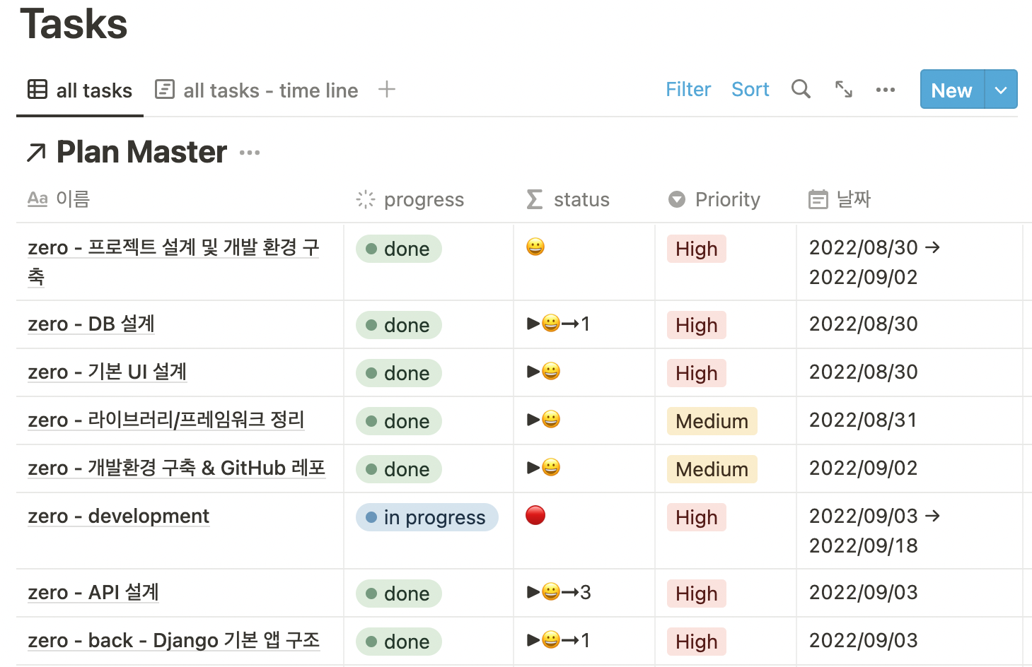 또한 여러 할 일 목록을 주먹구구식으로 관리하기 보다 Notion 데이터베이스를 활용하여 관리하고 있다. 팀 프로젝트를 진행했을 때보다는 엉성하겠지만, 작업 과정과 새로운 작업 목록 관리는 더욱 수월할 것으로 보인다. GitHub issues를 활용하는 것도 고민했는데, 이번 프로젝트는 이렇게 진행해볼 것 같다.